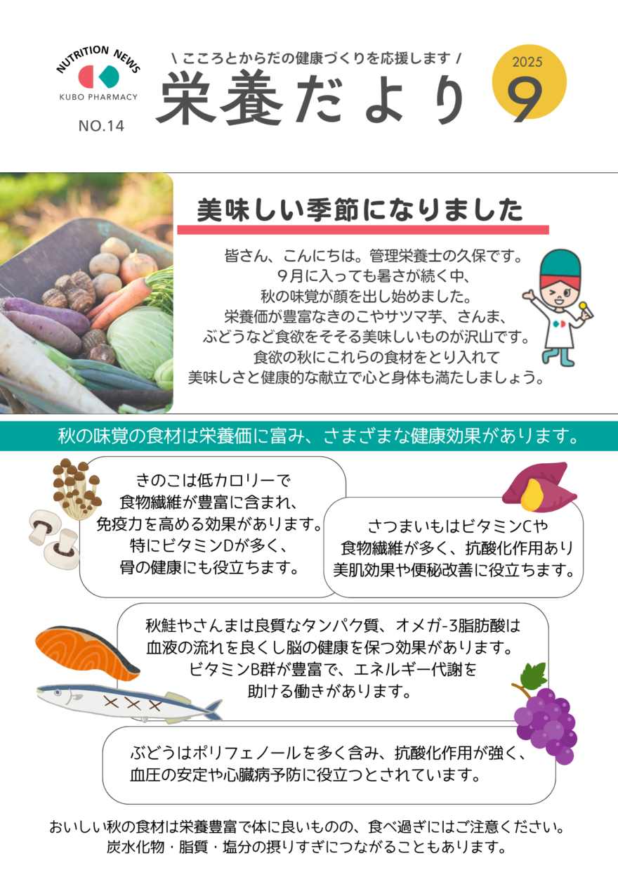 皆さまに栄養だより9月号をお届けします😊
