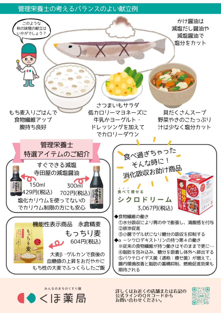 こんにちは、くぼ薬局 管理栄養士の久保です。